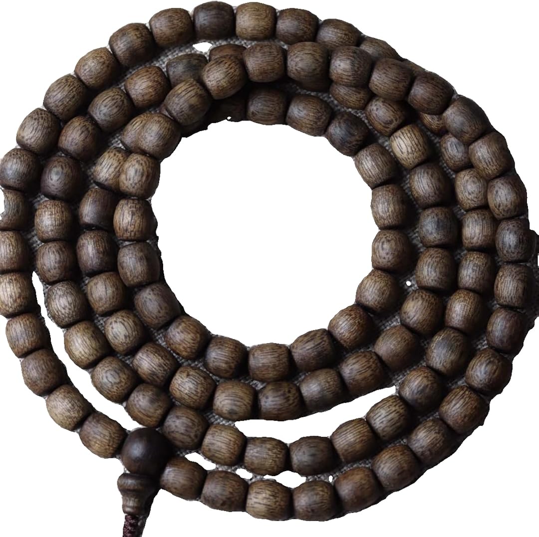 Kalimantan Agarwood 8mm*108 Beads Vintage Wooden Bead Bracelet Traditional Barrel-Shaped Buddhist Prayer Beads