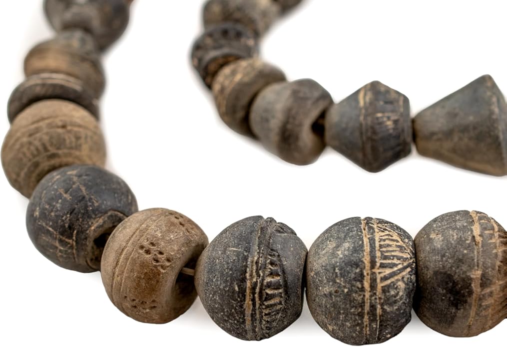 Old Jumbo Mali Clay Beads: Unique Artisan Spindle Whorl, Handmade from Mali, 36mm Diameter