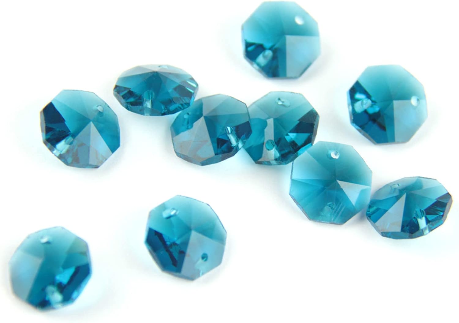 Normal Colors 14mm 1000pcs/2000pcs Crystal Glass Octagon Beads 1 Hole/2 Holes DIY Accessories for Loose Prism Pendants,Blue Zircon,2 Holes-2000pcs