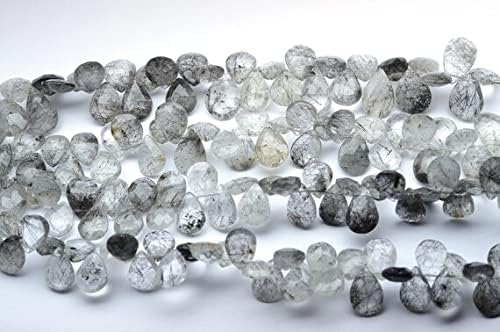 7 Inch 10x14-10x15mm Natural Black Rutilated Quartz Faceted Pear Shape Briolette Beads