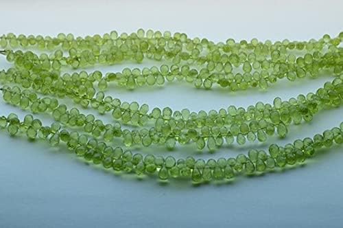 10 x 7" Strand Superfine Quality-7" Strand-4-6mm Natural Vivid Peridot Faceted Teardrop Shape Briolette Beads