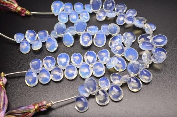 6" Strand-9x11mm-Superfine Opalite Quartz Faceted Pear Shape Briolette Beads
