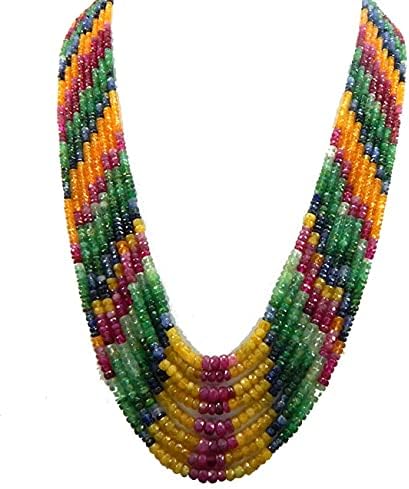 Strand 19" 2-5 MM Micro Faceted Shaded Multi Sapphire Rondelle Beaded Necklace Ruby, Emerald, Sapphire Beads