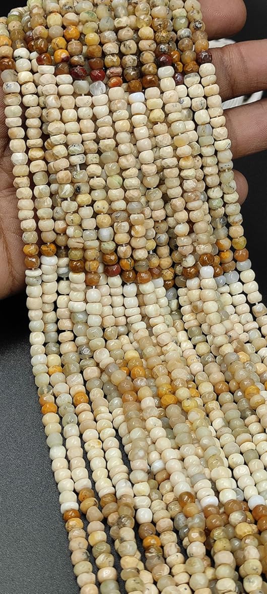 Hanumat Gems Lot of 10 Strands Peruvian Yellow Opal Rondelle Faceted Gemstone Beads,Peruvian Opal Faceted Beads,Peruvian Opal Rondelle Beads,5.00-6.00 MM Beads,13 Inches Strand.