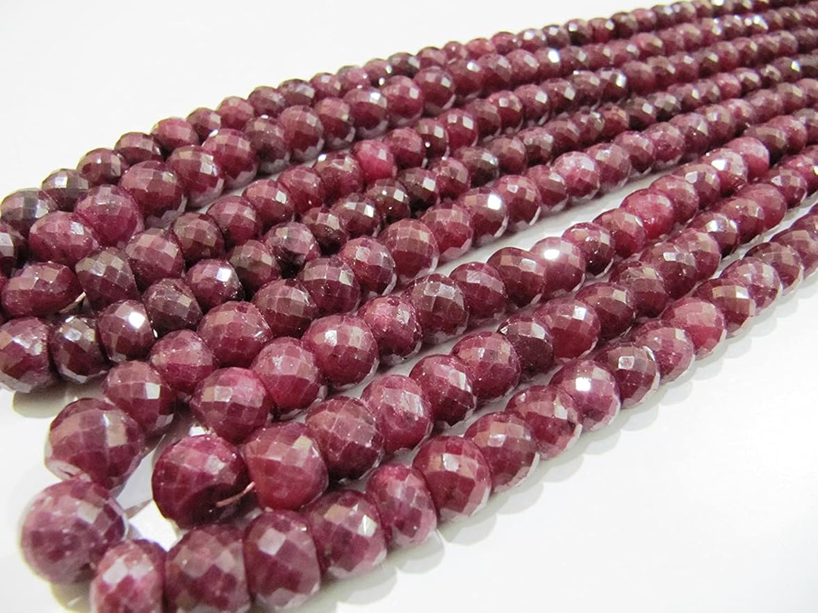 Hanumat Gems Lot of 10 Strands Natural Corundum Ruby Faceted Rondelle Beads Micro Faceted 7to10mm Beads Strand Courandam 8 Inches Strand