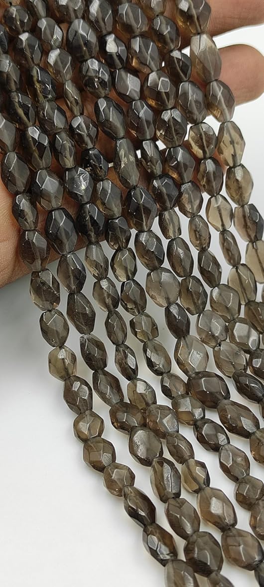 Hanumat Gems Lot of 10 Strands Smokey Quartz Gemstone Faceted Heishe Beads Smooth Gemstone Smooth Square Shape Beads Size - 4-6 MM 16 Inch Full Strand