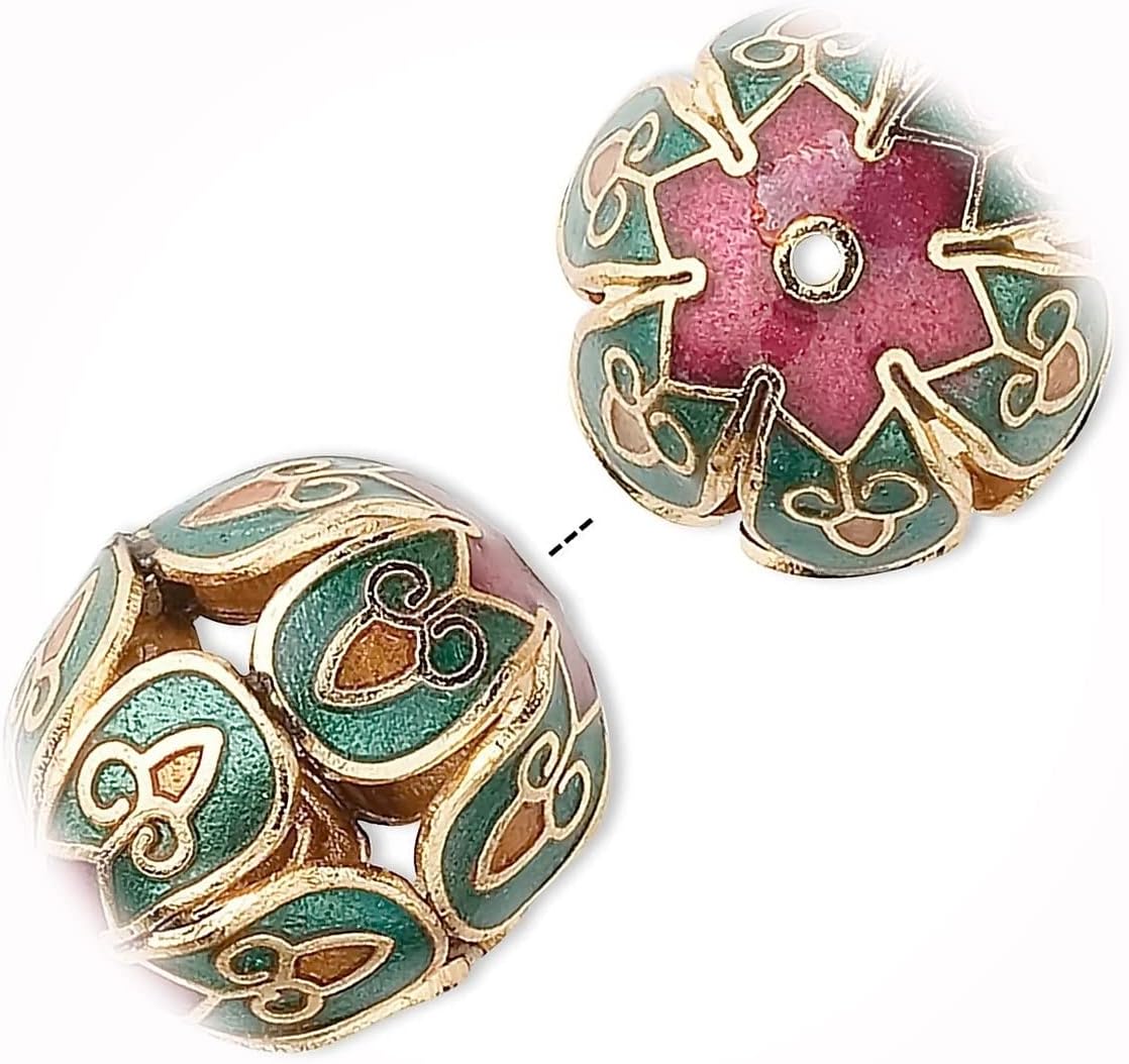 New 4 Gold Plated Copper Red & Green 16mm Round Beads with Cut Outs for DIY Crafts and Jewelry Making LU06196MAR