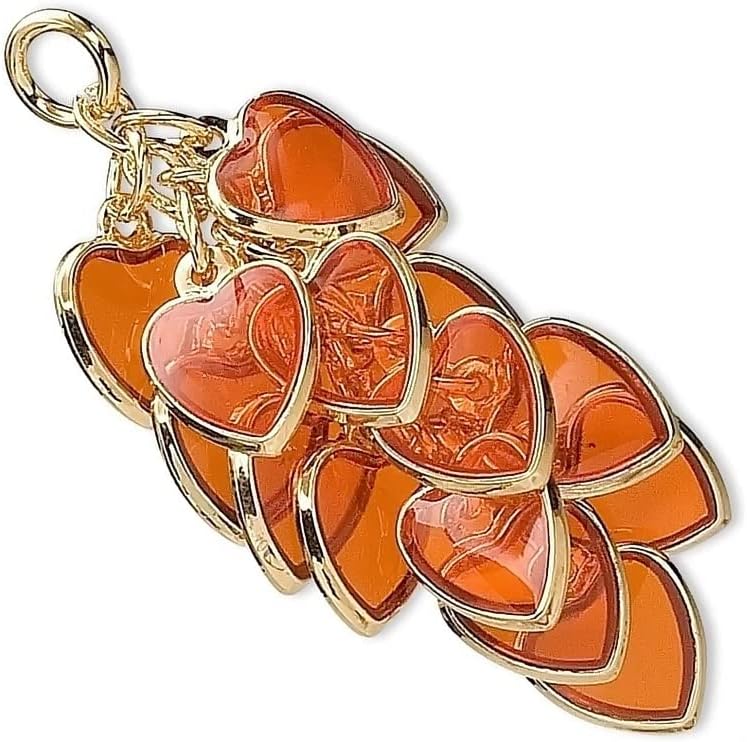 New Focal, 4 Gold Plated Brass & Epoxy Orange Heart Cluster Drops (60 Charms) for DIY Crafts and Jewelry Making LU05877MAR