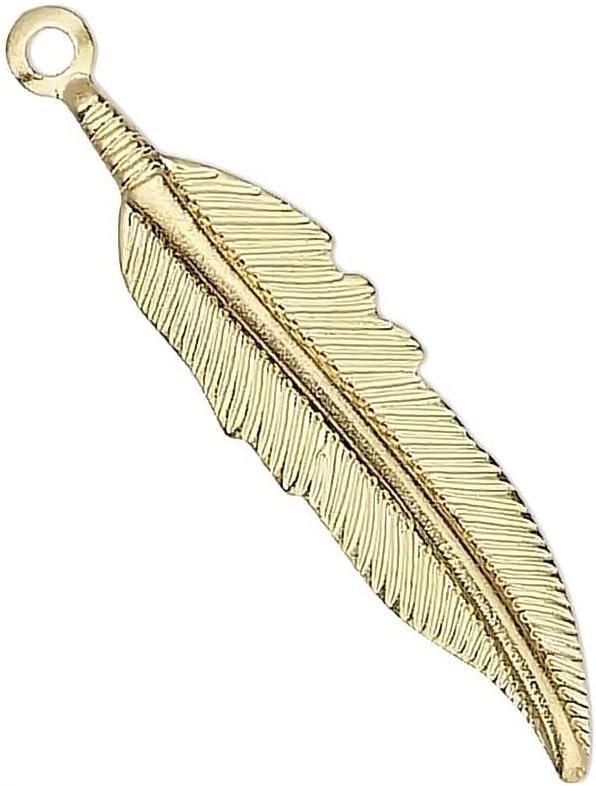 New 100 Shiny Gold Plated Brass 25x6mm Single Sided Feather Focal Charms for DIY Crafts and Jewelry Making LU06036MAR