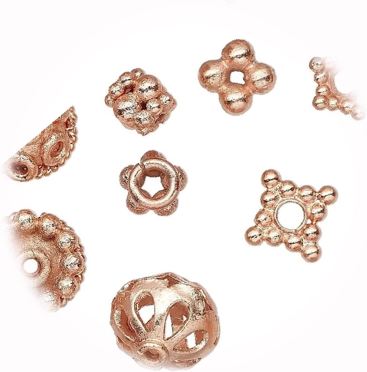 New 50 Grams (60-70) Shiny 100% Copper Beads & Bead Cap Design Mix for DIY Crafts and Jewelry Making LU06063MAR