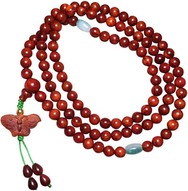 Mascot Wooden Crafts Wood Carving Art Wood Decoration Artwork 破茧化蝶小叶紫檀0.6 * 108颗鸡血红佛珠手串手链念珠 (破茧化蝶小叶紫檀6mm)