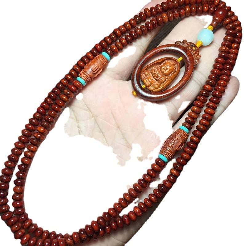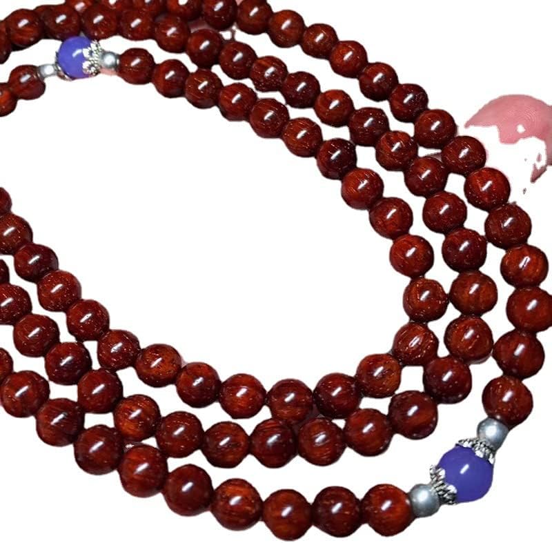 Mascot Wooden Crafts Wood Carving Art Wood Decoration Artwork 花满人间小叶紫檀0.6X108颗酒红底佛珠手串手链念珠 (花满人间款小叶紫檀)