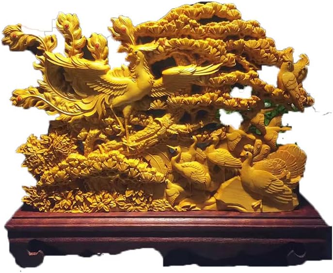 Mascot Wooden Crafts Wood Carving Art Wood Decoration Artwork 百鸟朝凤雕刻摆件 崖柏/黄杨木 多款选择时尚款(崖柏款)