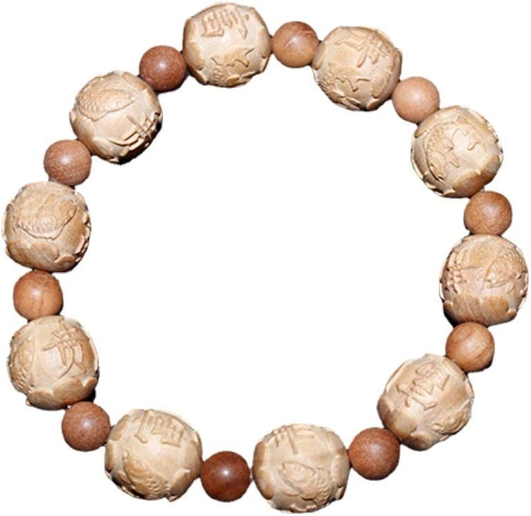 Mascot Wooden Crafts Wood Carving Art Wood Decoration Artwork 东加老山檀香雕刻珠富贵有余(鱼)手串2.0 1.8 1.5(富贵有余(鱼)2.0MM)