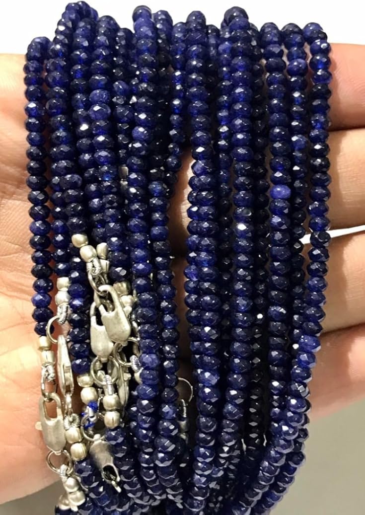 Natural Blue Corundum Round Faceted Beads 3.5 * 4mm 18 inch Long String Jewelry Making Gemstone Beads for Necklace Bracelet
