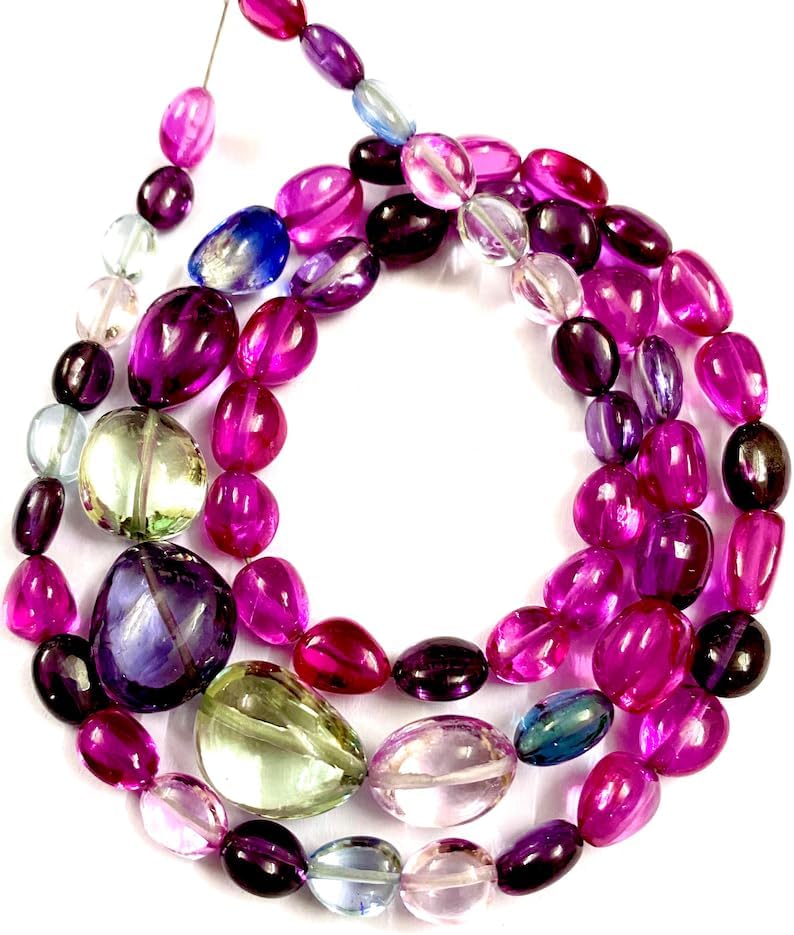 Natural Multi Pink Sapphire Nuggets Smooth Beads 5-11 MM 20 inch Long String Jewelry Making Gemstone Beads for Necklace Bracelet
