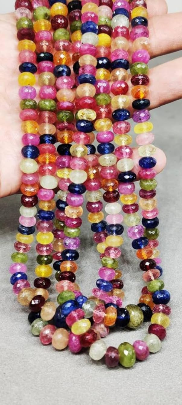 Natural Natural Multi Sapphire roundelle Smooth Beads 6-8 MM 20 inch Long String Jewelry Making Gemstone Beads for Necklace Bracelet