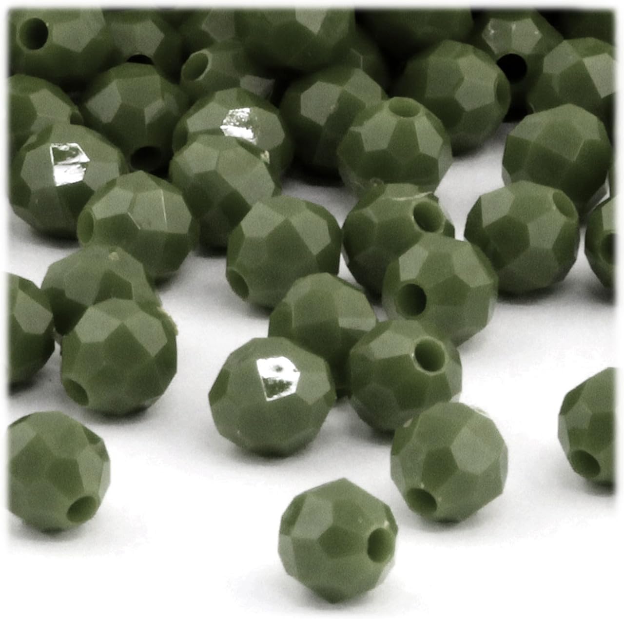 Round Opaque Faceted Plastic Beads, 12mm, 1000-pc, Army Green by The Crafts Outlet
