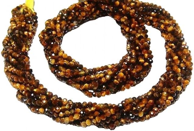 13" Full Natural Tiger Eye Rondelle Approx 2mm Micro Cut Beads Drilled Faceted Israel Cut Round lot of 10 Strands CHIK-STRD-96498