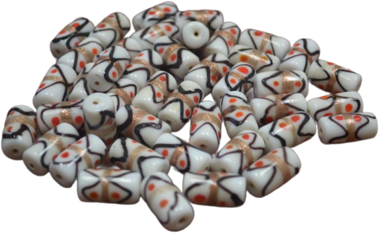 Generic 180 Pcs White Stripe Glass Tube Beading Beads 2 Lbs Jewelry Crafting Art Beads Charms for Handmade Friendship Jewelry Bracelet Necklace DIY Crafts Beading Supplies Jewelry Making