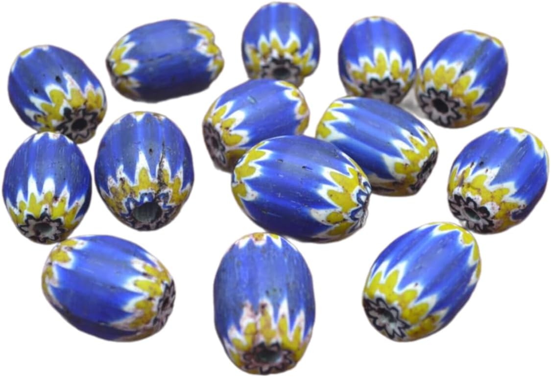 18 Pcs Blue Stripe Glass Beading Beads Jewelry Crafting Art Beads Charms for Handmade Friendship Jewelry Bracelet Necklace DIY Crafts Beading Supplies Jewelry Making