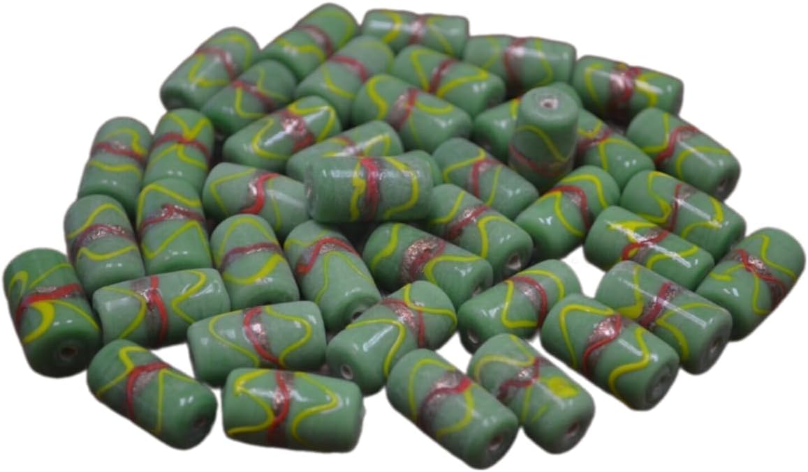 180 Pcs Green Stripe Glass Tube Beading Beads Jewelry Crafting Art Beads Charms for Handmade Friendship Jewelry Bracelet Necklace DIY Crafts Beading Supplies Jewelry Making