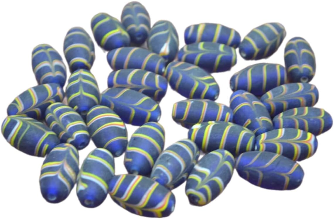 Generic 65 Pcs Blue and Yellow Stripe Old Glass Beading Beads Jewelry Crafting Art Beads Charms for Handmade Friendship Jewelry Bracelet Necklace DIY Crafts Beading Supplies Jewelry Making