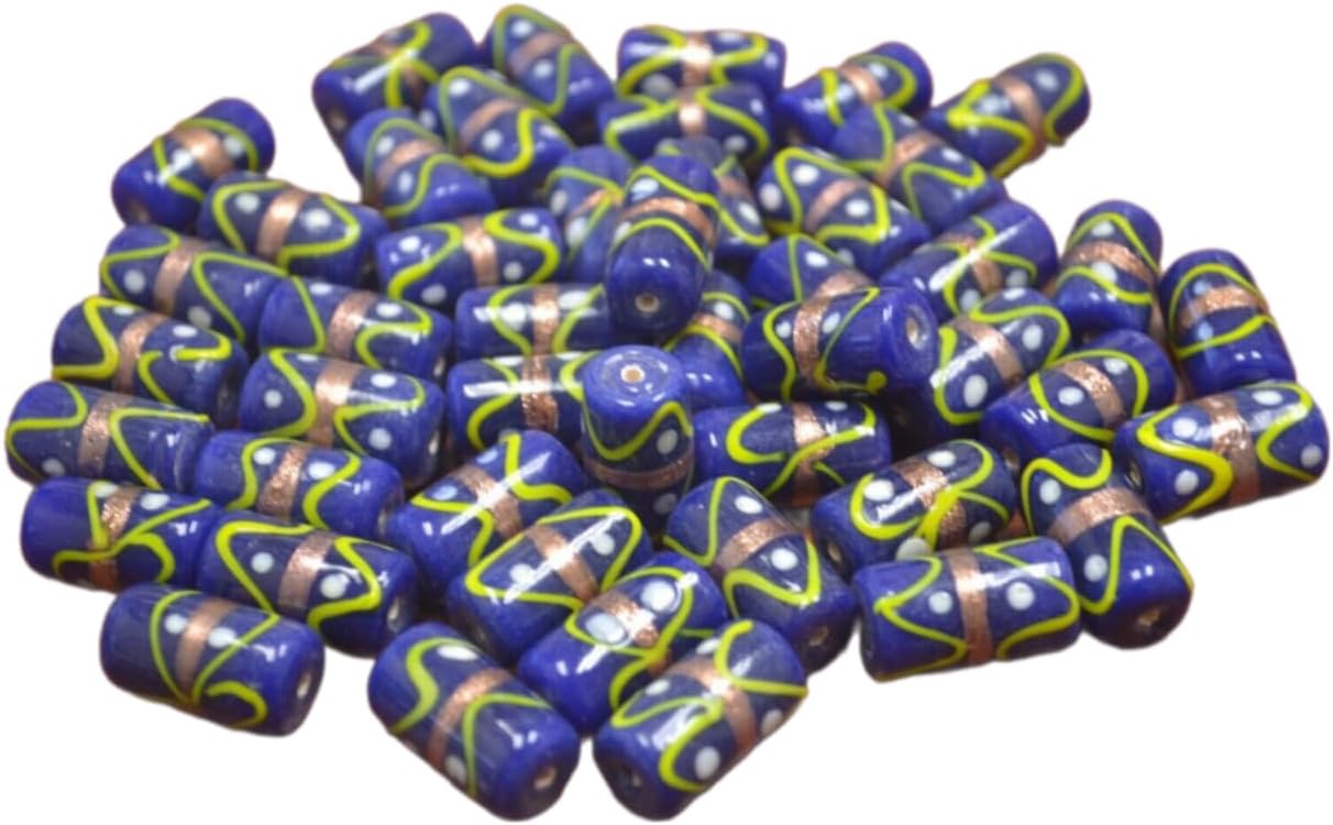 180 Pcs Blue Stripe Glass Tube Beading Beads Jewelry Crafting Art Beads Charms for Handmade Friendship Jewelry Bracelet Necklace DIY Crafts Beading Supplies Jewelry Making