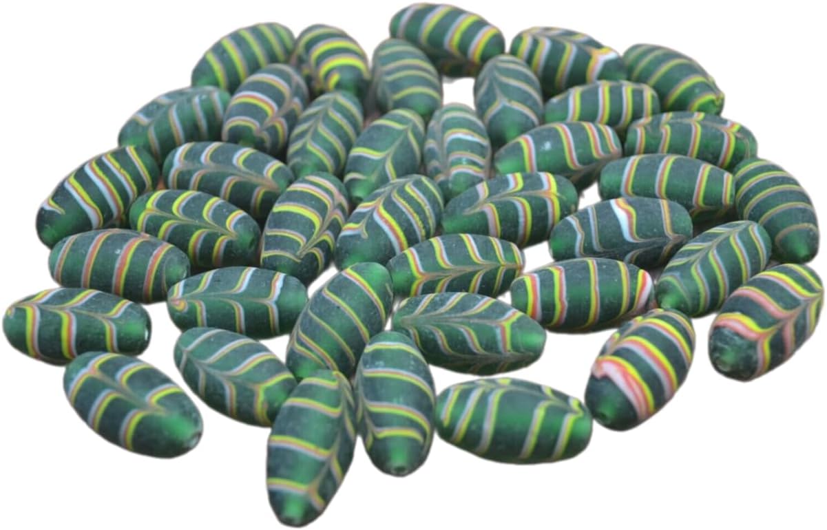 65 Pcs Green and Yellow Stripe Old Glass Beading Beads Jewelry Crafting Art Beads Charms for Handmade Friendship Jewelry Bracelet Necklace DIY Crafts Beading Supplies Jewelry Making