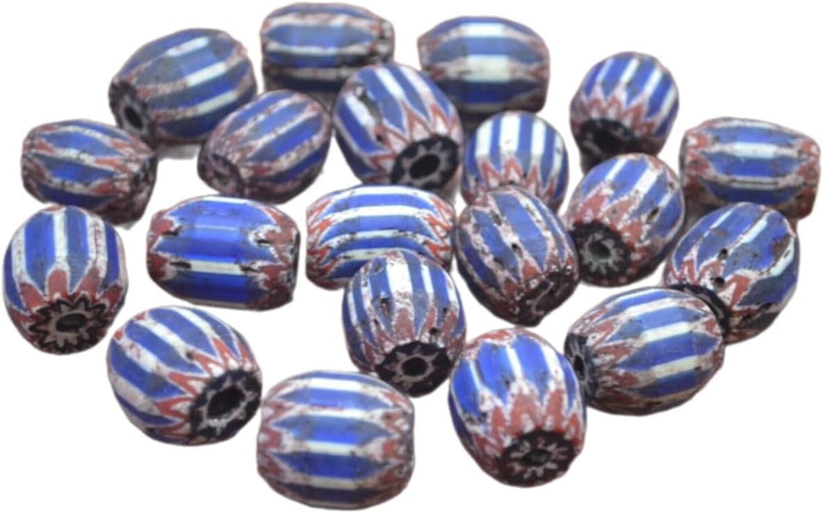 25 Pcs Blue and White Stripe Glass Beading Beads Jewelry Crafting Art Beads Charms for Handmade Friendship Jewelry Bracelet Necklace DIY Crafts Beading Supplies Jewelry Making