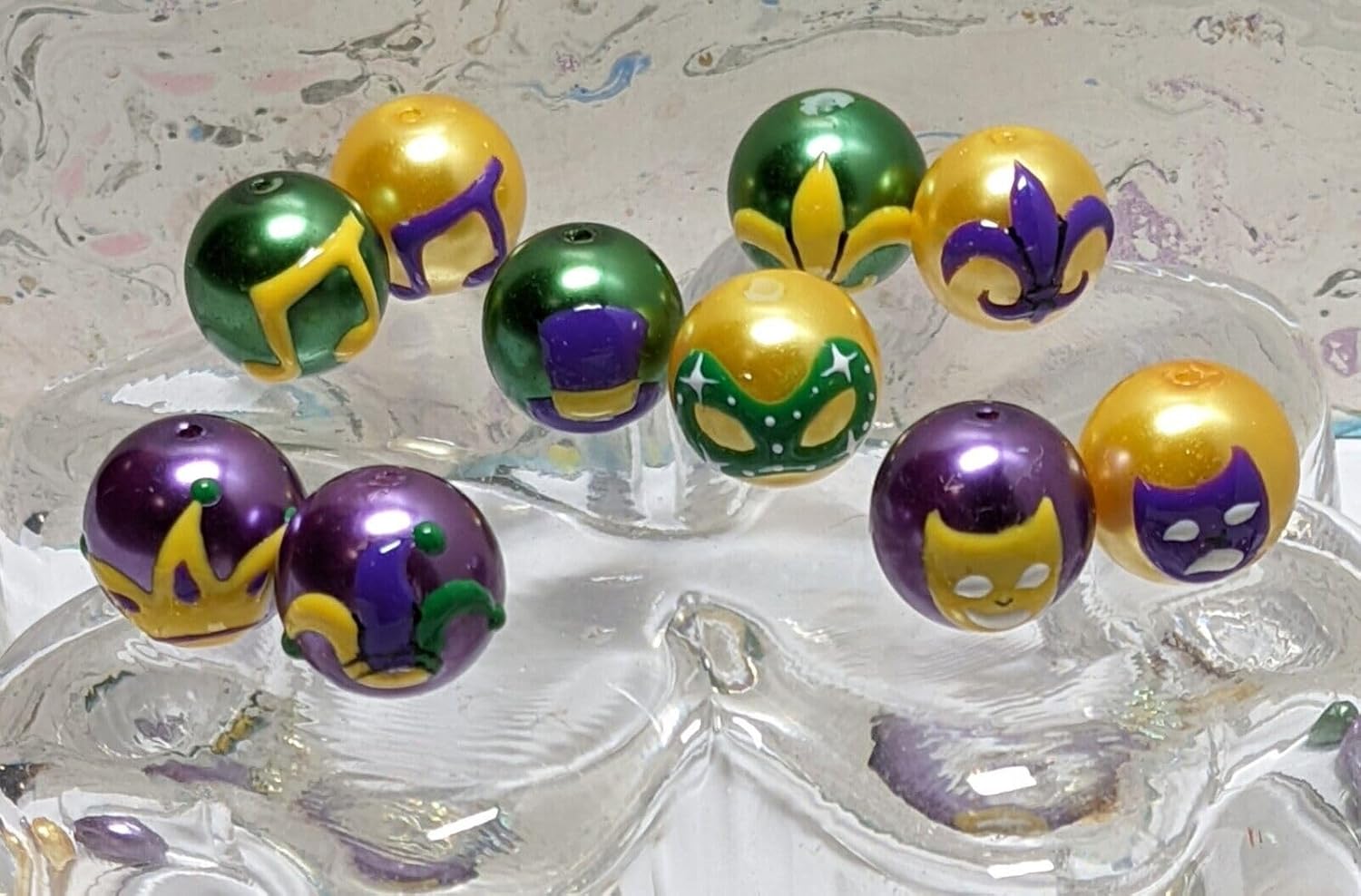 Mardi Gras Beads Mix Glass Beads Crown Masquerade Music Fleur De Lis 40 pcs