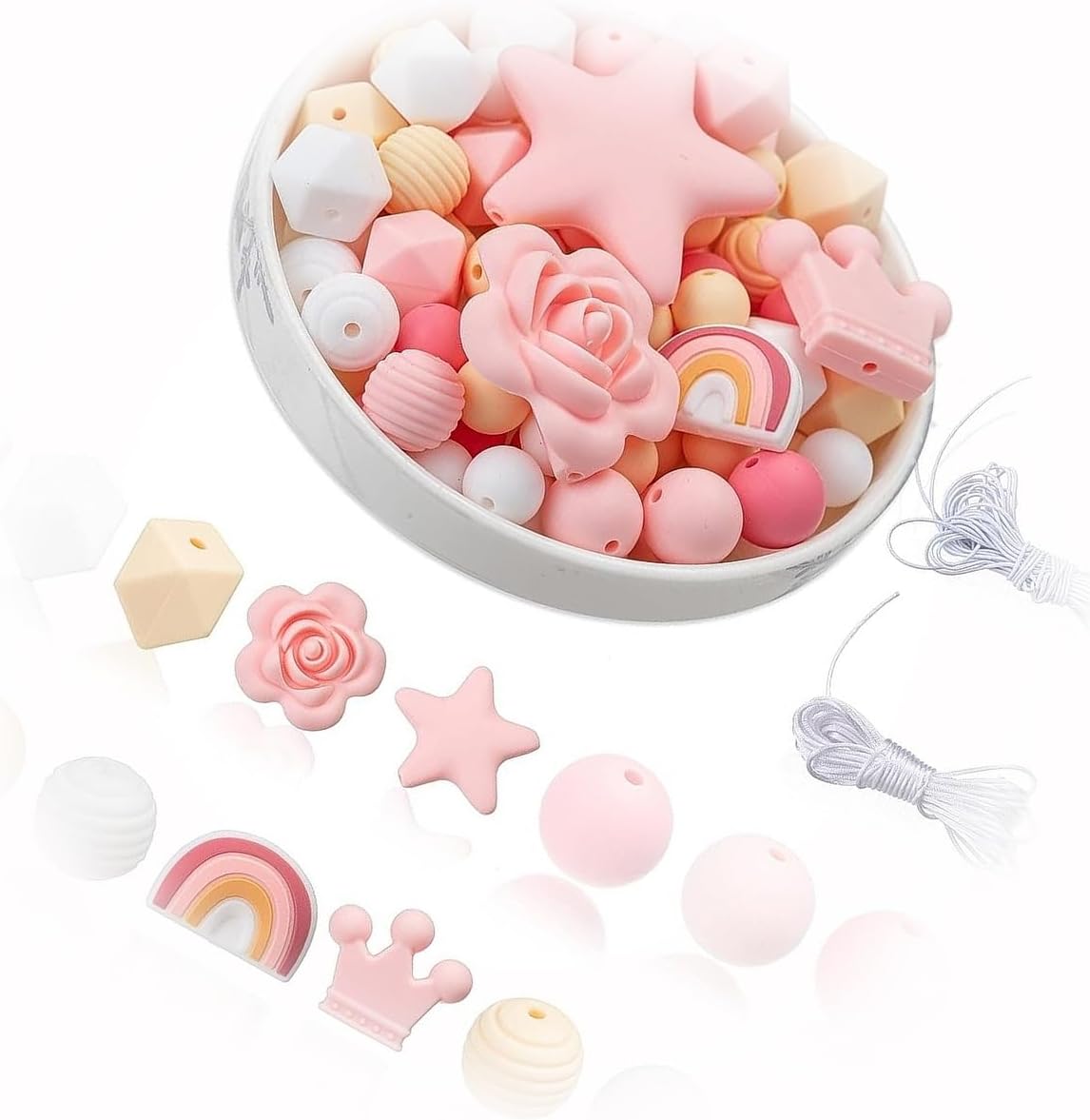 The New Silicone Beads Pastel Pink Rubber Chunky Bubblegum Mixed Set Bulk 86Pc Ideal for Creating Unique Accessories and Decorations TANI1A03827