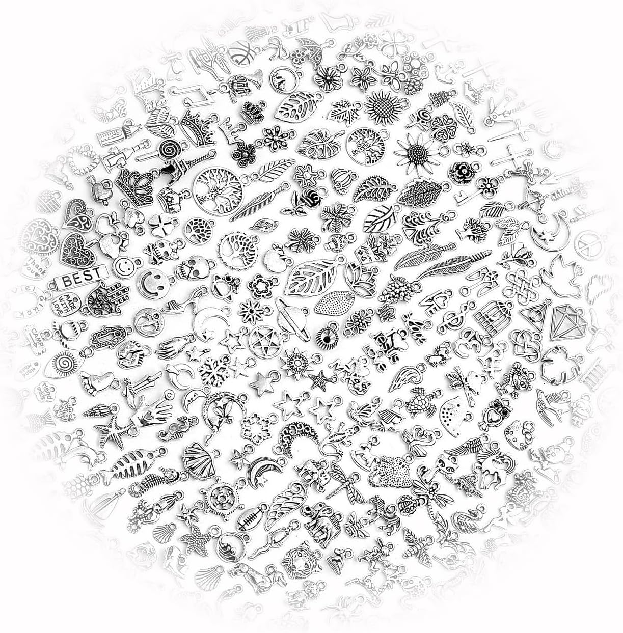 The New Assorted Beads Mixed Lot Metal Antiqued Silver Jewelry Findings 500Pcs Ideal for Creating Unique Accessories and Decorations TANI1A03773