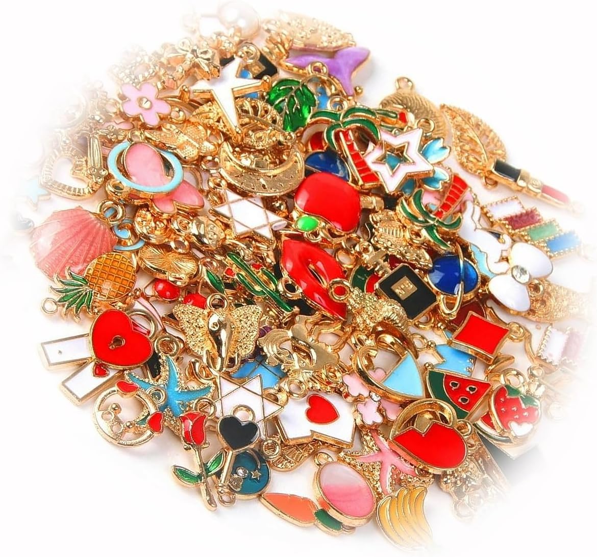 The New 350 Enamel Gold Charms Mixed Pendants Findings Grab Bag Set Assorted Lot Mix Ideal for Creating Unique Accessories and Decorations TANI1A03835