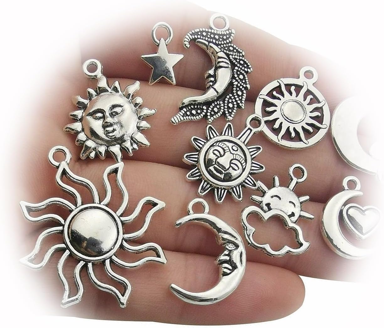 The New 80 Assorted Sun Pendants Antiqued Silver Moon Celestial Mixed Charms Ideal for Creating Unique Accessories and Decorations TANI1A03625