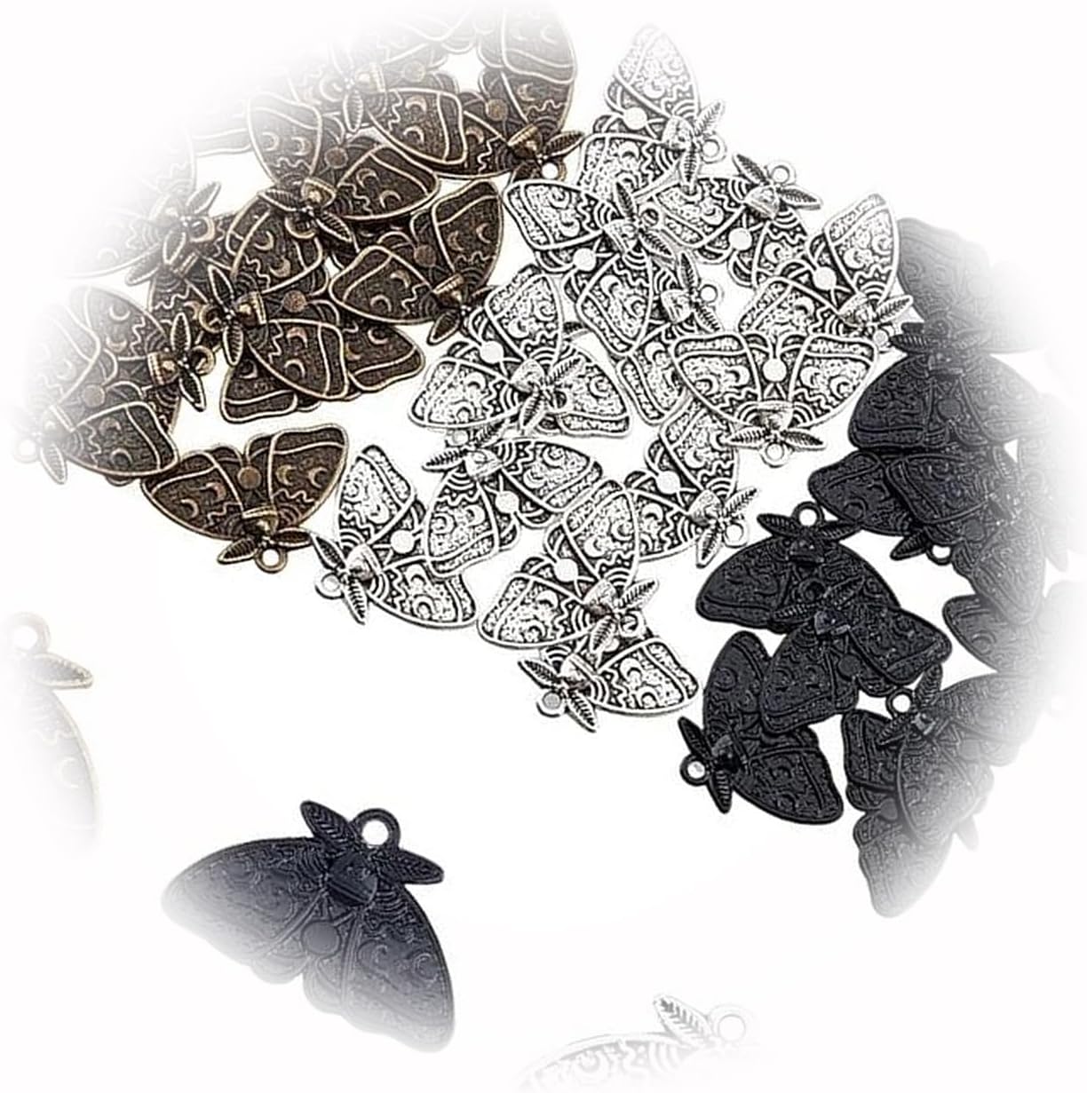 The New Moth Charms Moon Phase Antiqued Silver Bronze Black Gothic Flash Bulk 60Pcs Ideal for Creating Unique Accessories and Decorations TANI1A03818