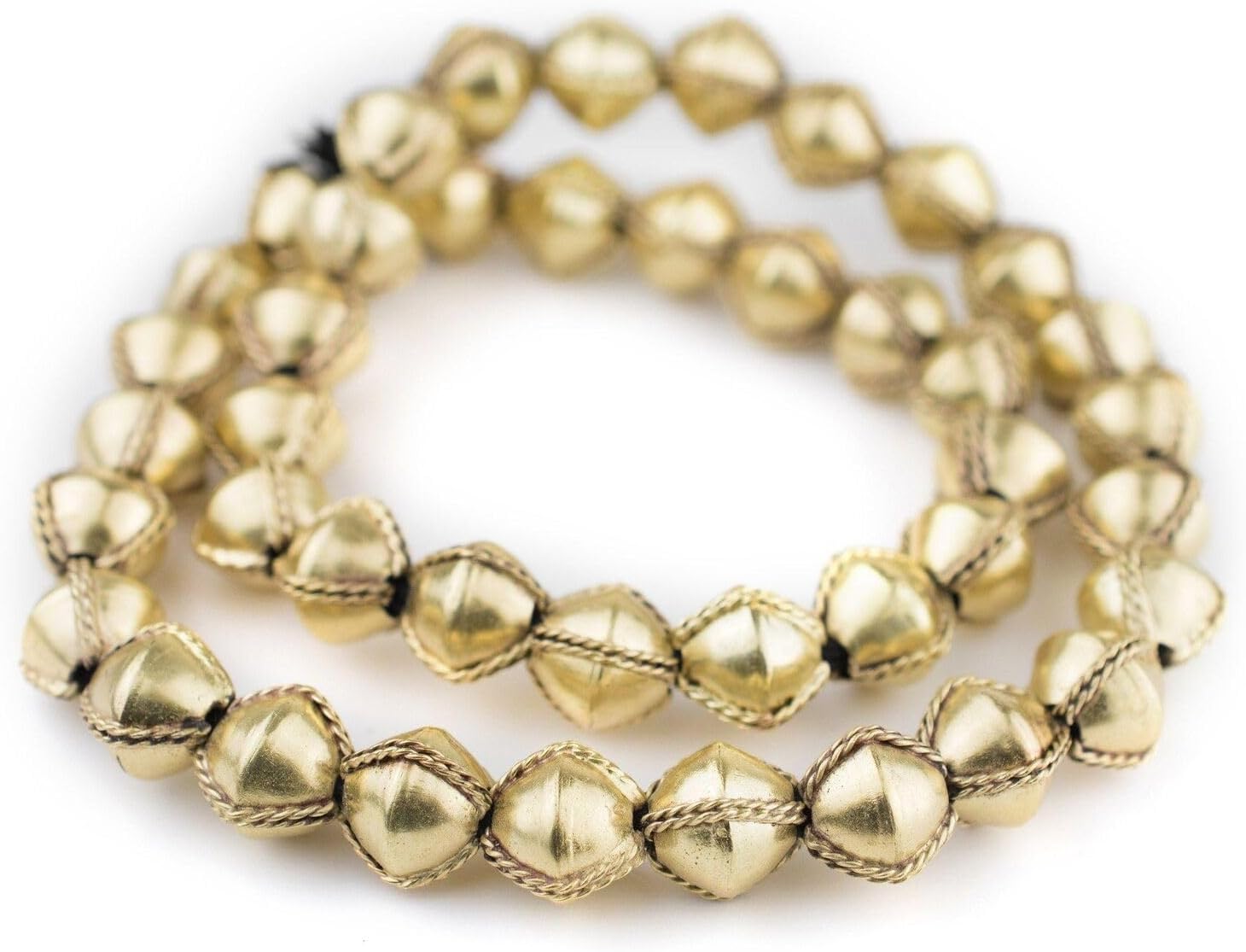 Ethiopian Wired Brass Bicone Beads 15mm African Large Hole 24 Inch Strand