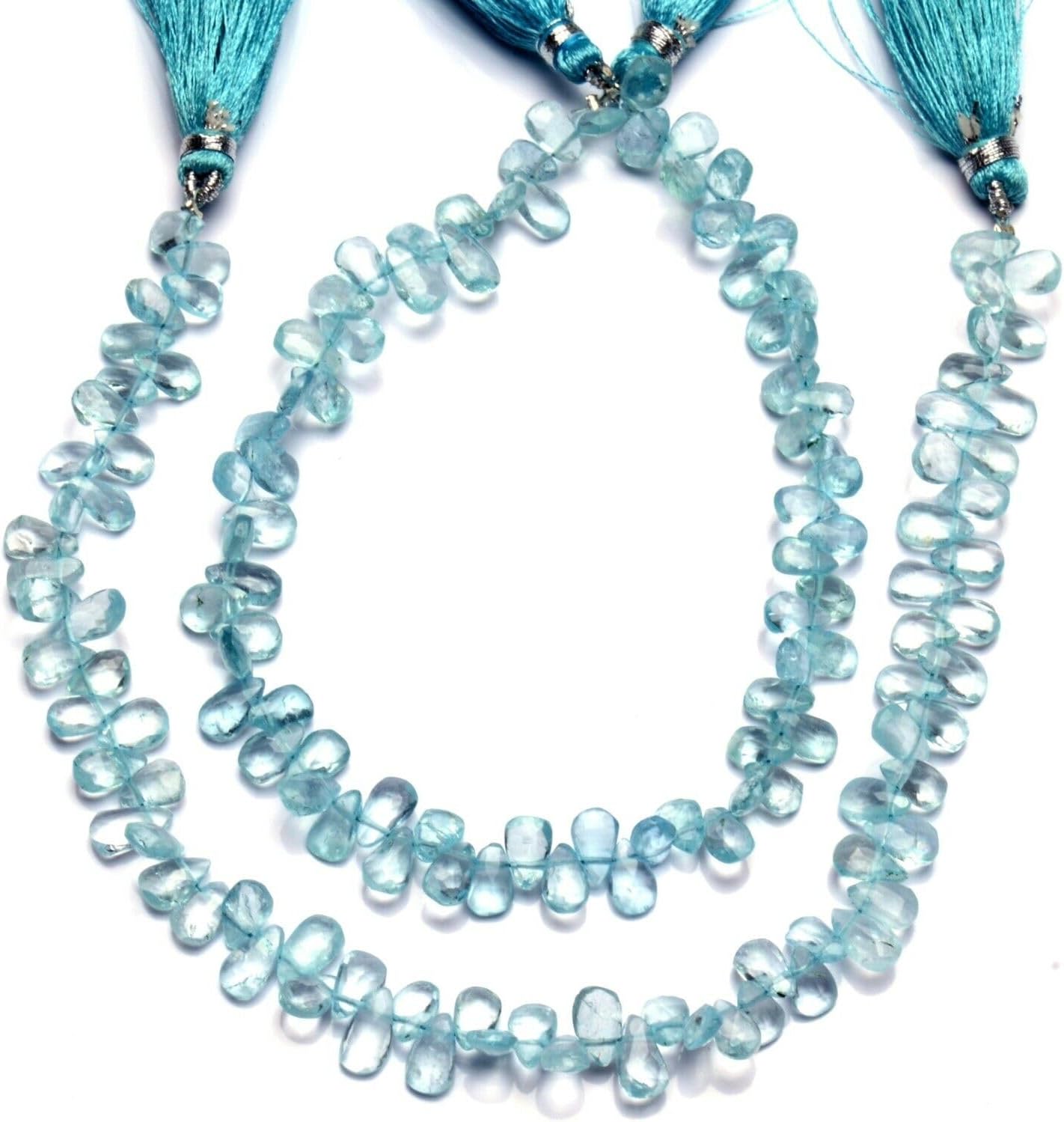6 inch Strand of Natural Aquamarine 5.5x7.5mm Teardrop Faceted briolette Beads for DIY Jewelry Making. |BRIO_00698