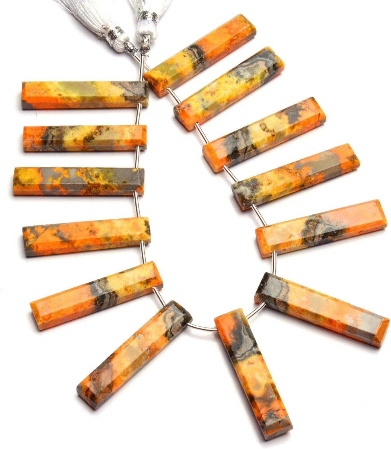 8 inch Strand of Natural Bumble Bee Jasper 33x7mm Baguette Faceted briolette Beads for DIY Jewelry Making. |BRIO_01348