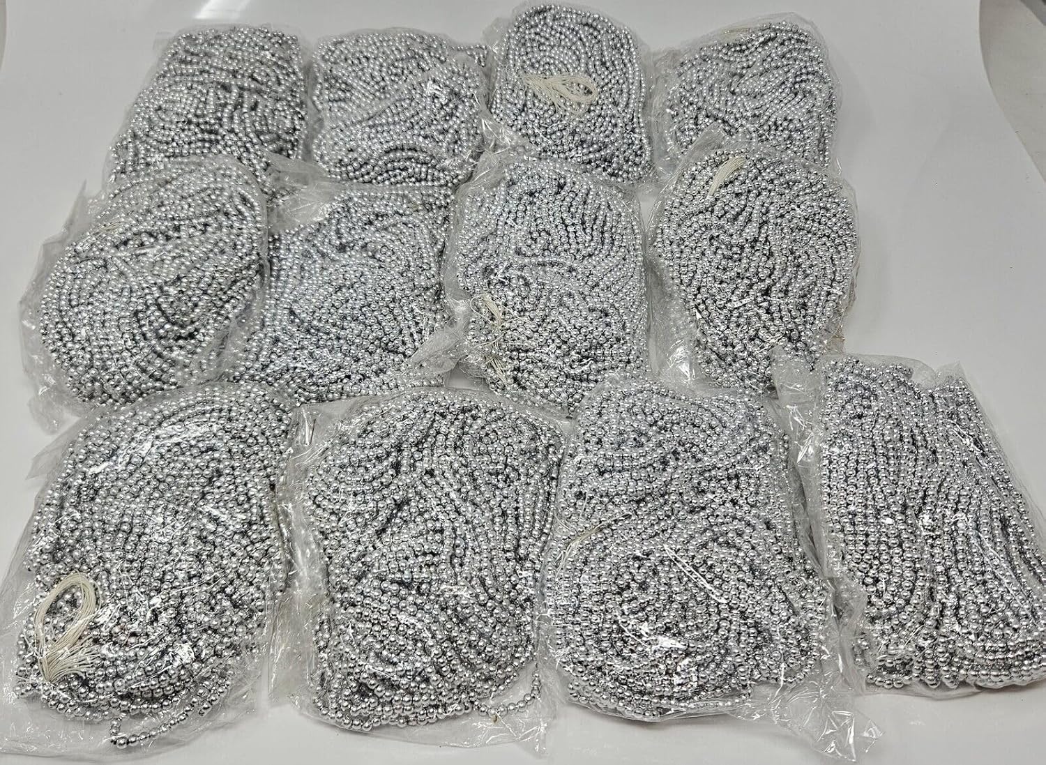 Lot of 144 Metallic Silver Loose Pearls Strands 4mm Round Plastic Beads 60"