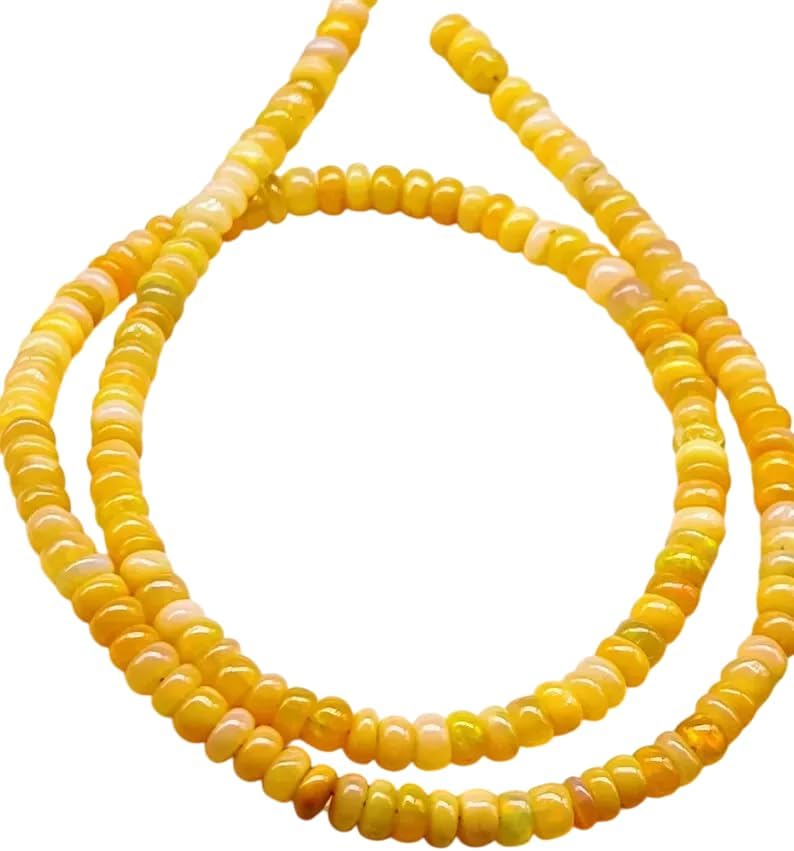 AAA Fire Opal Yellow Smooth 3-4mm, Rondele Beads 16inch Gift for Her, Mom