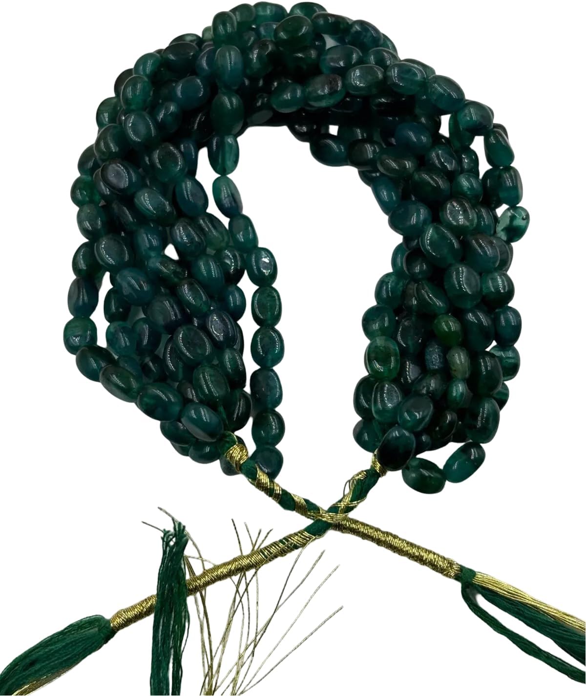 Natural Dark Green Aventurine Beaded Strand, 7mm Plain Beads, 240 Carat, Gold Tassel
