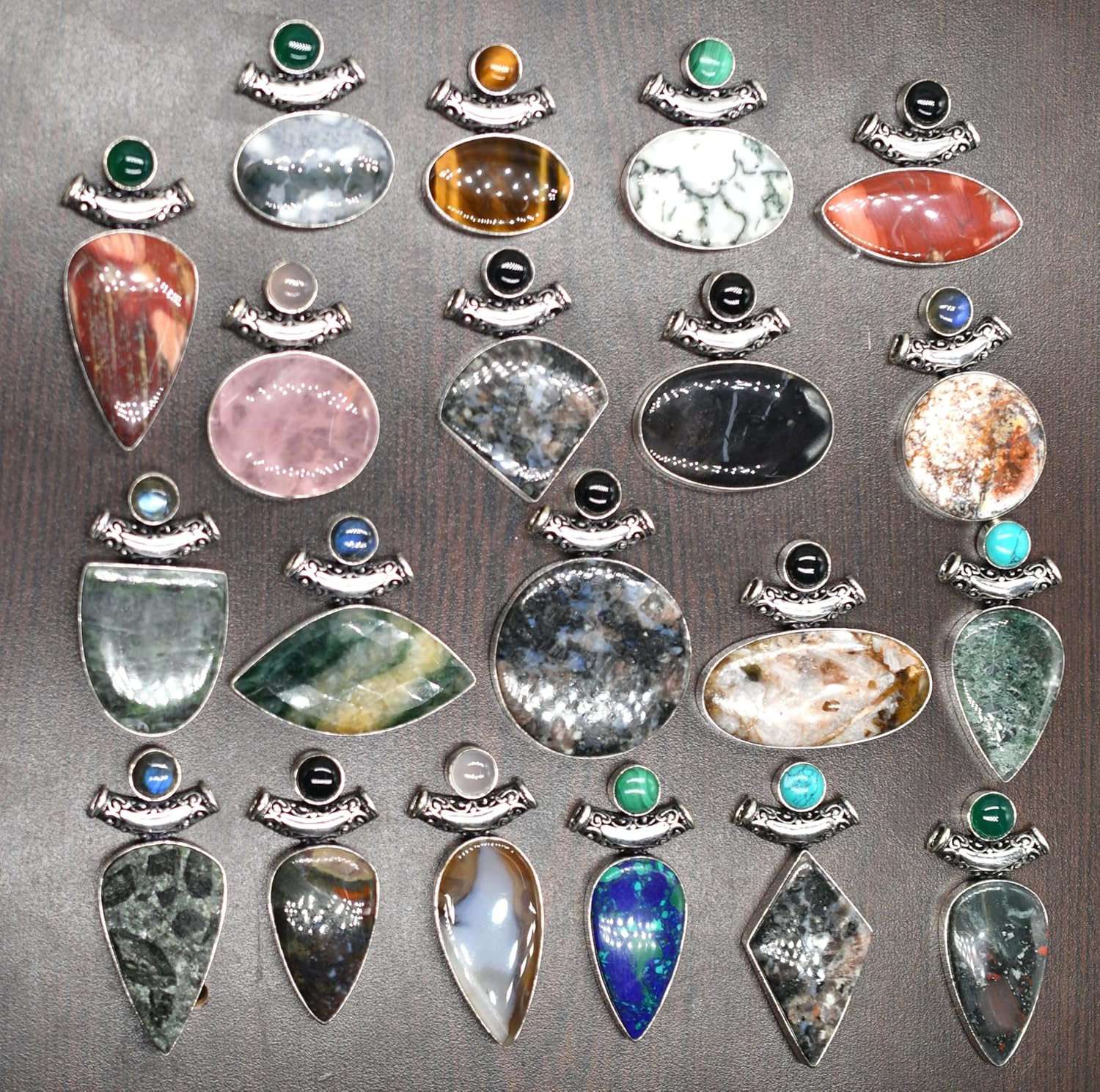 25 PCS Mix Gemstones Pendant Antique Silver Plated Mix Lot A106 P 8106