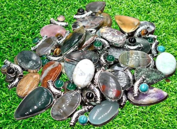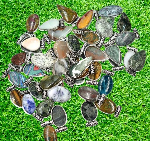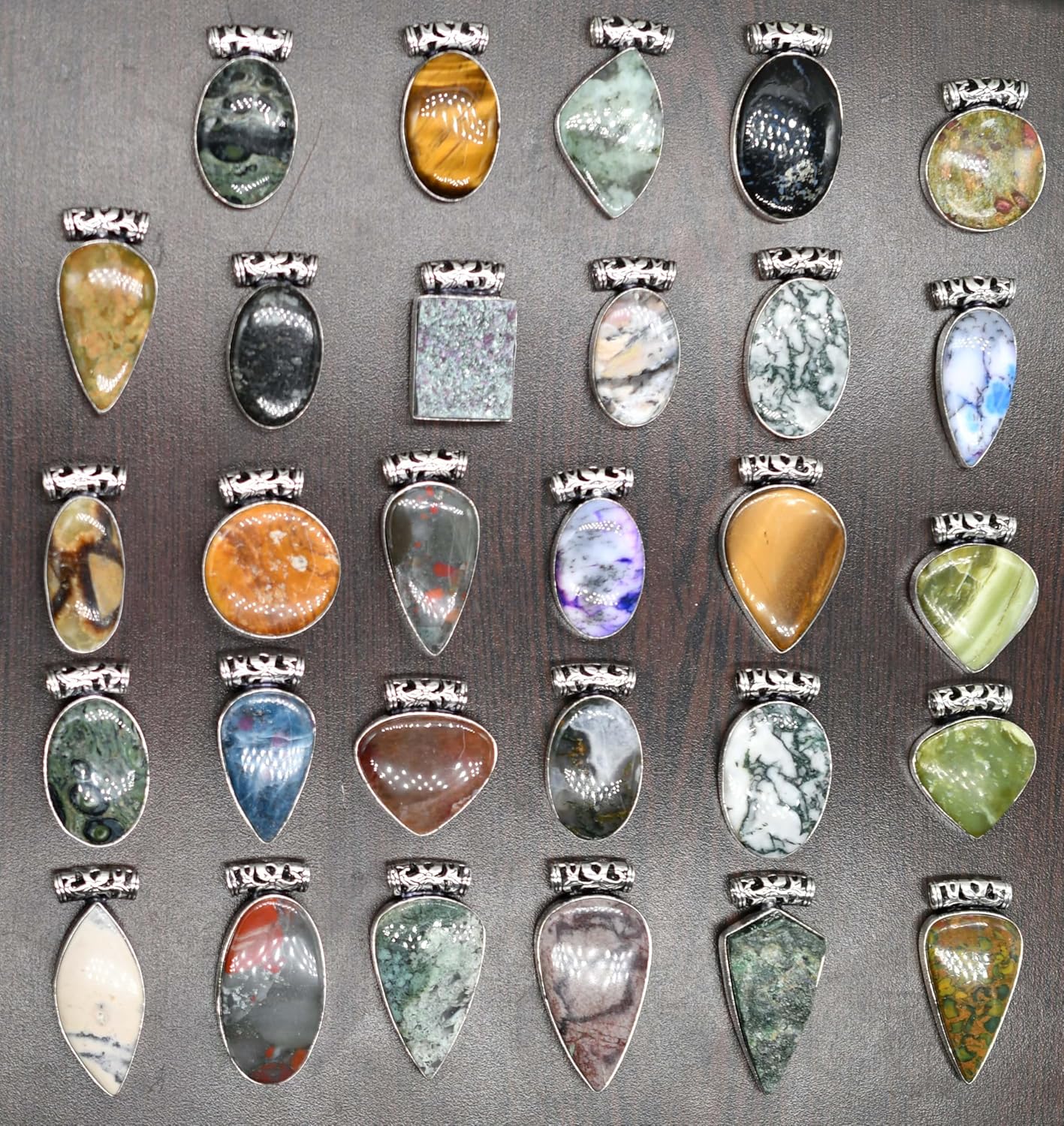 50 PCS Mix Gemstones Pendant Antique Silver Plated Mix Lot A101 P 8101