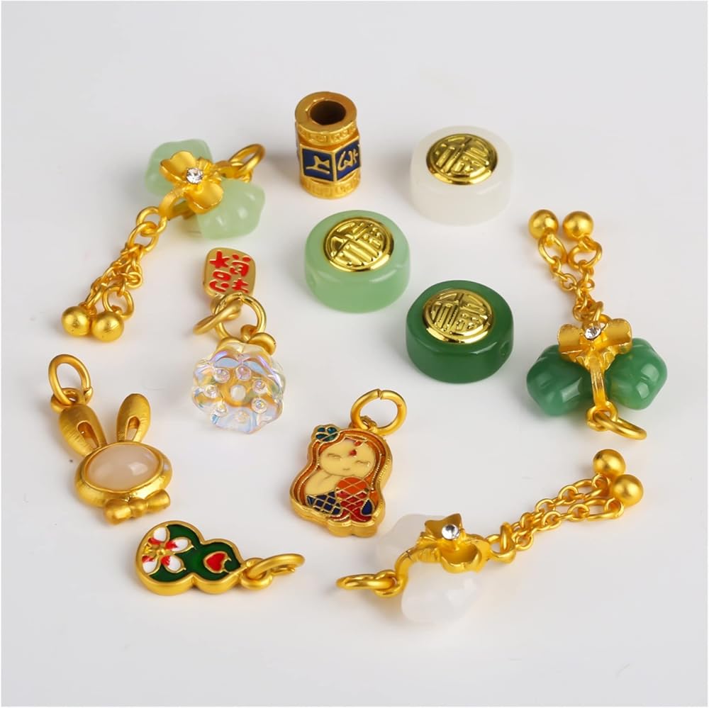 Gold Inlay Jade Fortune Loose Beads Bow Pendant DIY Accessories Bracelet Necklace Spacer Sand Gold