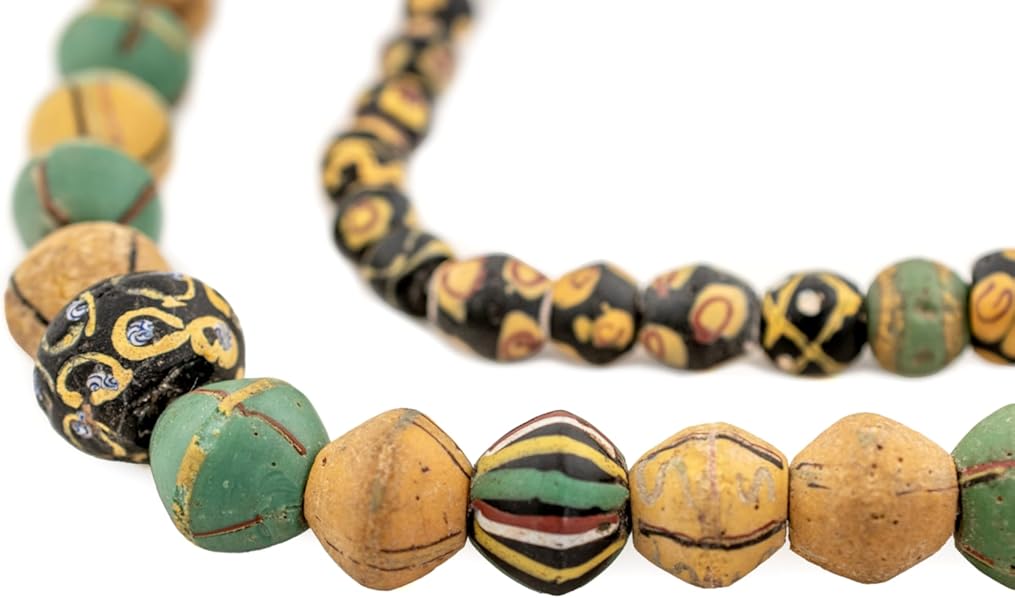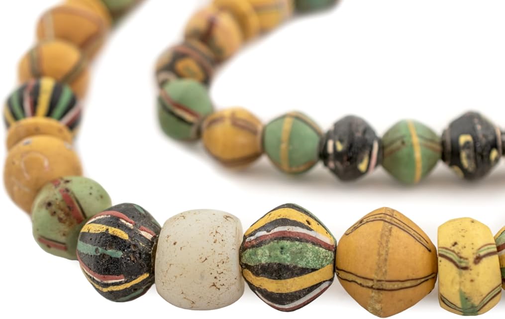 The Bead Chest Striped Yellow Antique Venetian King Beads: Authentic African Trade Bicone Glass Beads Full Strand