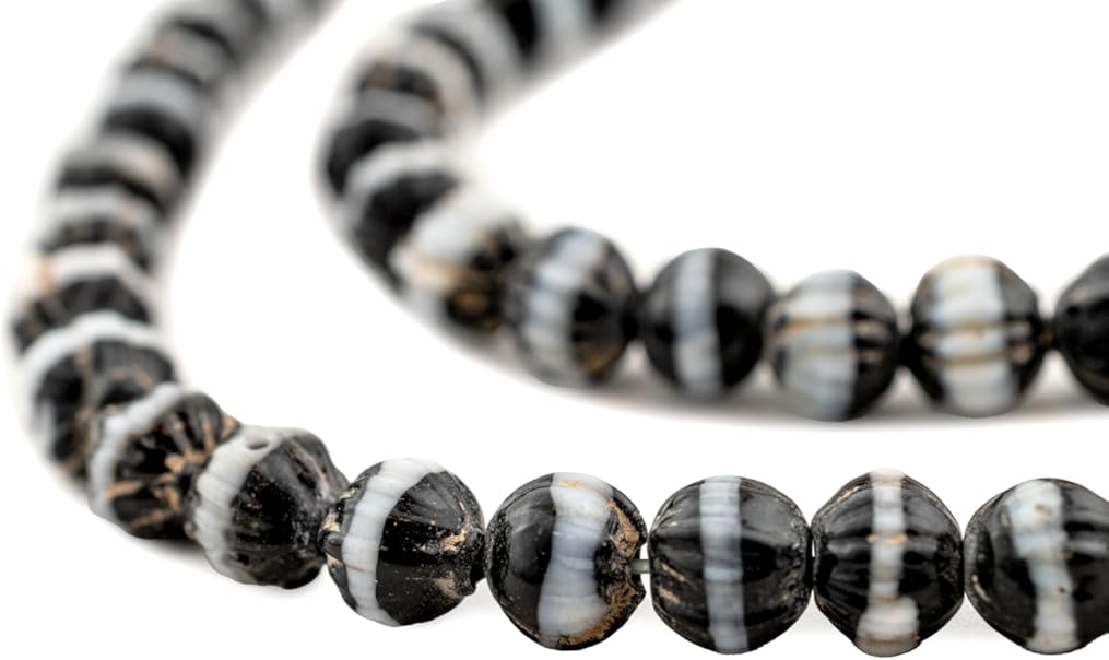 The Bead Chest White Stripe Dogtooth Venetian Beads: Unique Glass Trade Beads, Full Strand