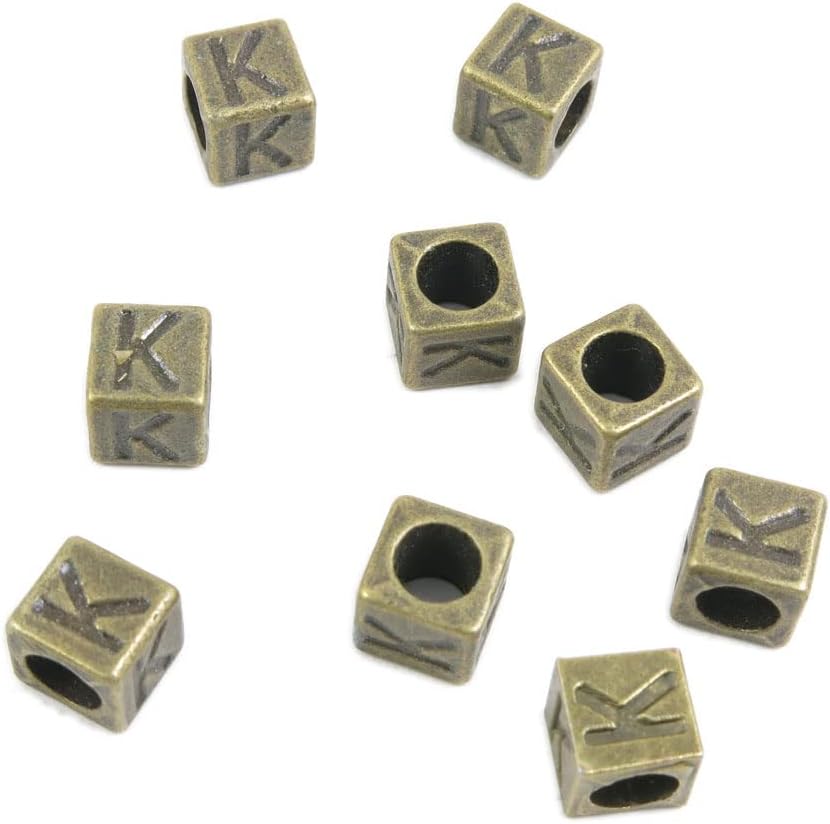 Price per 700 Pieces Antique Bronze Plated Jewelry Making Charms Findings Crafting Suppliers P7JX2D Cube Alphabet K Loose Beads