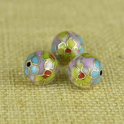 5pcs Polished Cloisonne Enamel Floral 12mm Round Beaded Chinese Copper Accessories DIY Jewelry Making Earrings Necklace Bracelets (Pink)