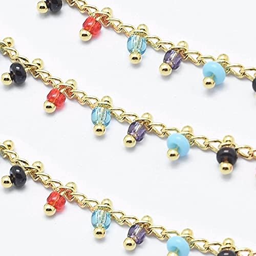 FC-94392 10mm/Roll 6x2mm Handmade Glass Beaded Chains with Spool Brass Chain Real Gold Plated Long-Lasting Plated Chain:About 2mm F60 - ( Type: Colorful )